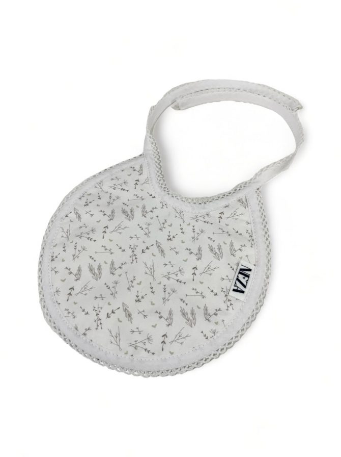 Babero redondito con opción a personalizar para recién nacido hasta los dos años aproximadamente. Confeccionado con algodón y toalla de rizo.